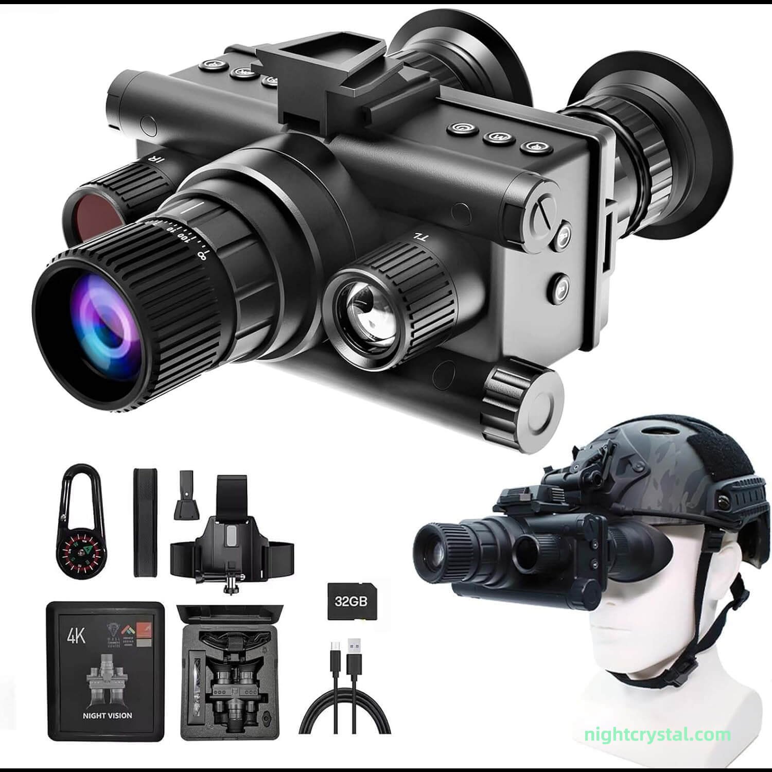 NightCrystal Z9157 Head Mounted Night Vision Goggles for Adults, 4K Infrared Digital Military Tactical Grade Thermal Binoculars Telescope with Compass and 8X Digital Zoom